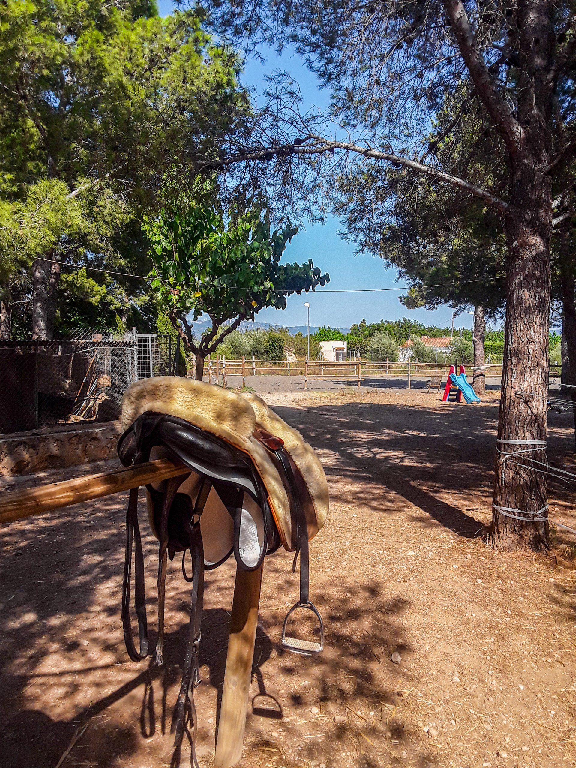 NATURA HÍPICA es una escuela conectada con la naturaleza. Aquí no hay cuadras. Toda la zona está dividida en pequeños pastos donde los caballos pueden moverse libremente, como en la naturaleza. Todos los caballos encuentran un lugar sombreado bajo los pinos incluso en los días calurosos y cuando la temporada termina en agosto, se van de transhumancia a los verdes pastos de las montañas.